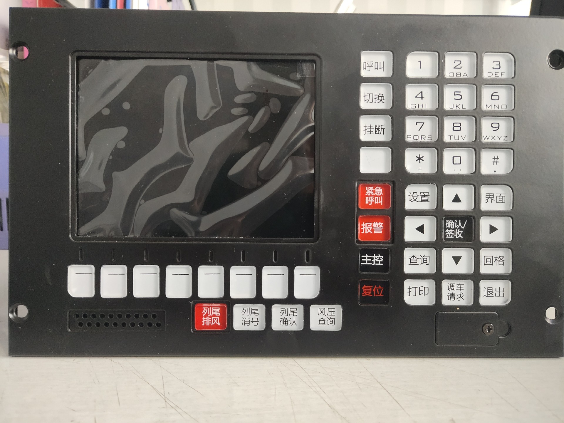 MMI外观尺寸与真实MMI一致,厚度尺寸减小,整体钣金外壳。按键采用树脂水晶按键,内部主要由5.6寸工业裸屏、屏驱动电路板、按键电路板、按键信号采集电路板、3.5寸嵌入式工业主板、扬声器及接口电缆组成,本质上为小型工业显示一体机。